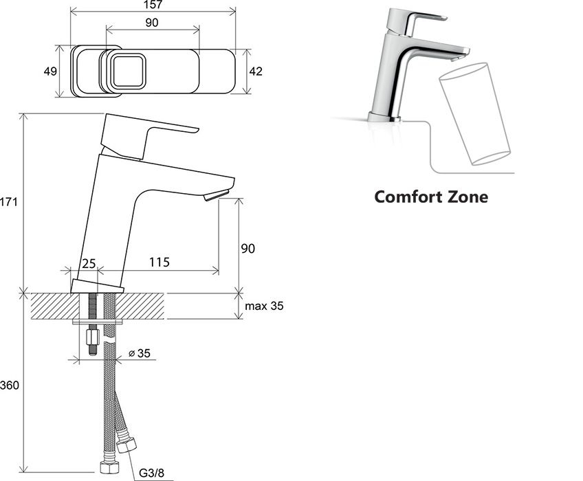• высота смесителя: 170 мм - удлиненный для большего комфорта