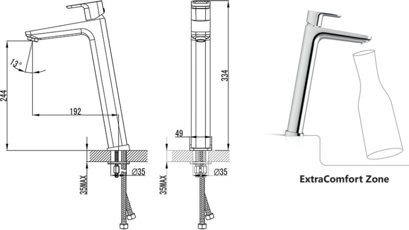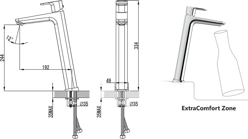 - ExtraComfort Zone - дополнительная высота смесителя