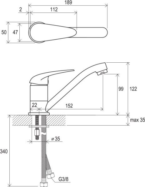 • соединительные шланги: гибкий 350 мм, диаметр G3/8