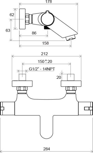 - межосевой размер смесителя : 150 мм
