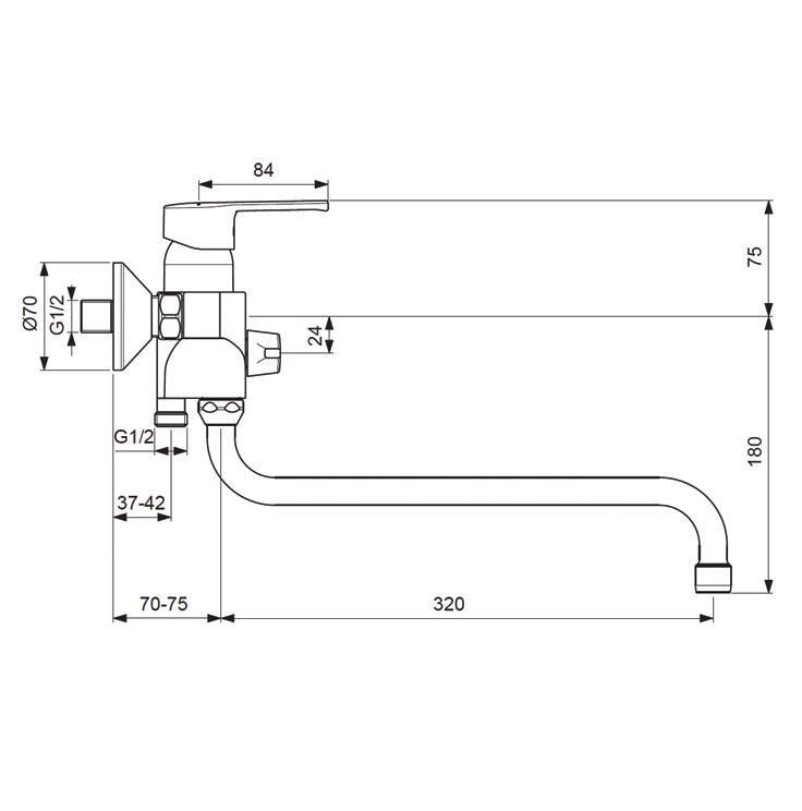 Длина излива, мм: 320