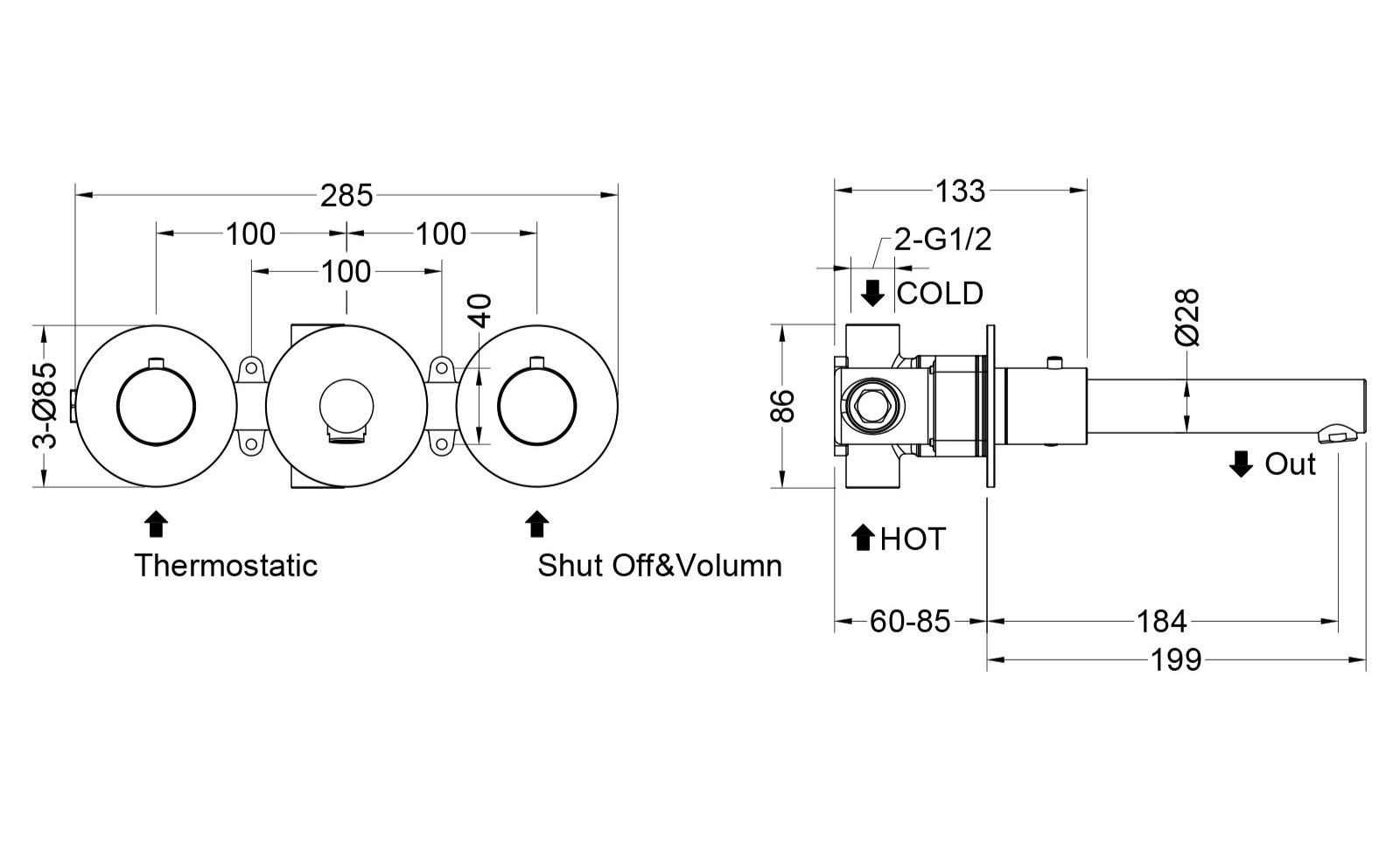 Черная сантехника становится все более популярной для ванных комнат из-за способности расставлять акценты. Встраиваемый смеситель Timo Saona 2382 предназначен для монтажа в твердой или полой стене. Основные преимущества встроенного смесителя: коммуникации, крепления и механизмы спрятаны в стену и видны только декоративные элементы, установить встроенный смеситель можно в любом месте. В смесителе установлен термостатический картридж для поддержания стабильной температуры воды. Регулировка температуры воды осуществляется ручкой термостата расположенной слева. Подача воды и увеличение напора осуществляется поворотом ручки расположенной справа. Сложностей монтажа не возникает при установке смесителя опытным сантехником. Внимательно изучите инструкцию по монтажу и эксплуатации. Черная сантехника требует бережного ухода.