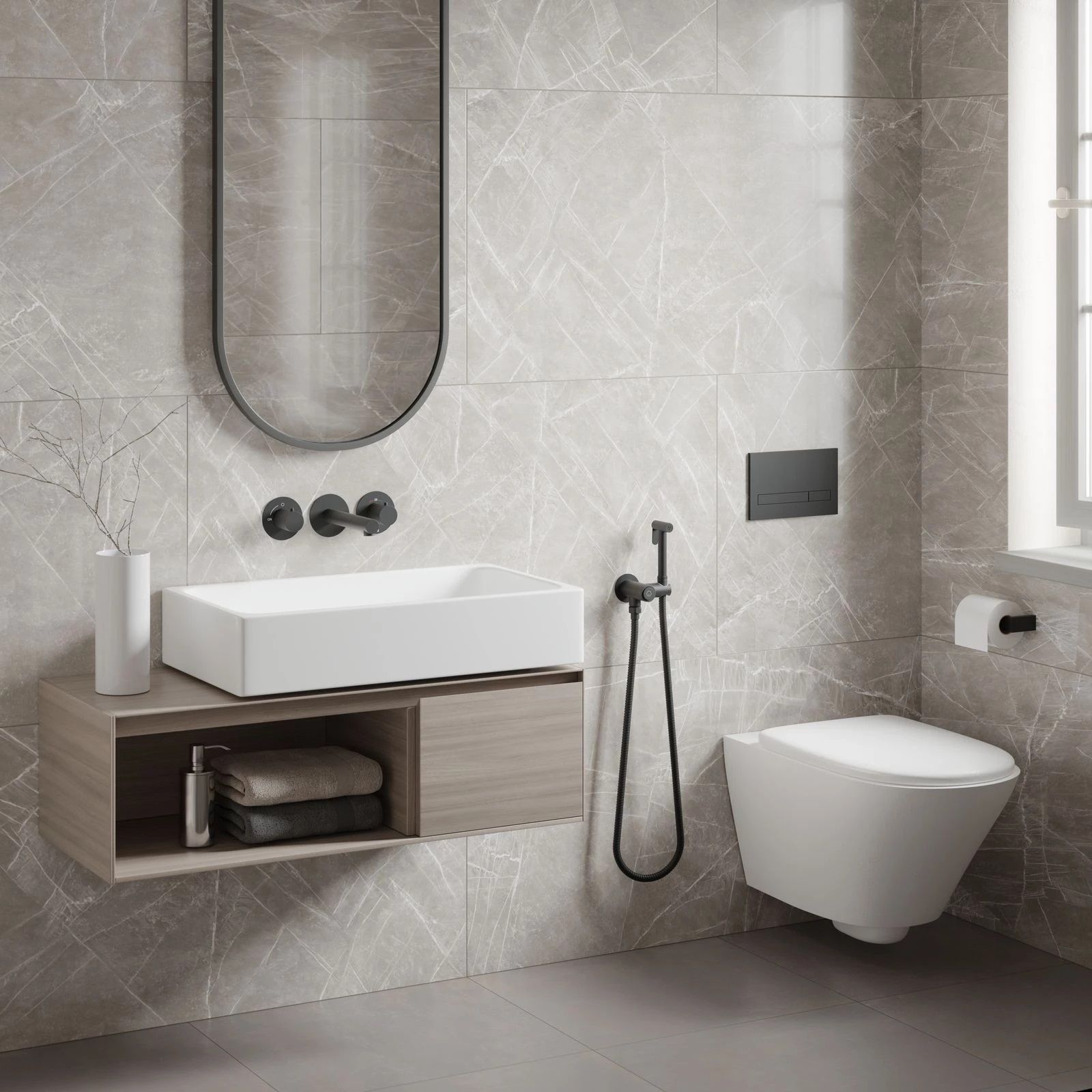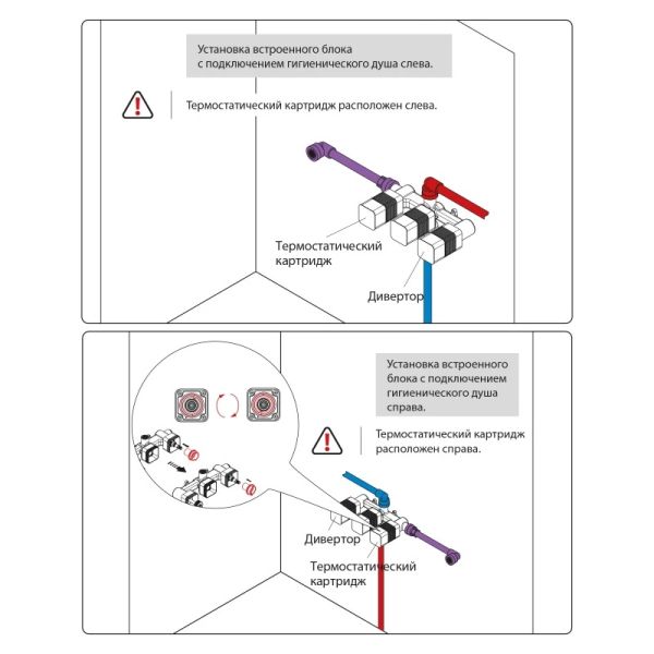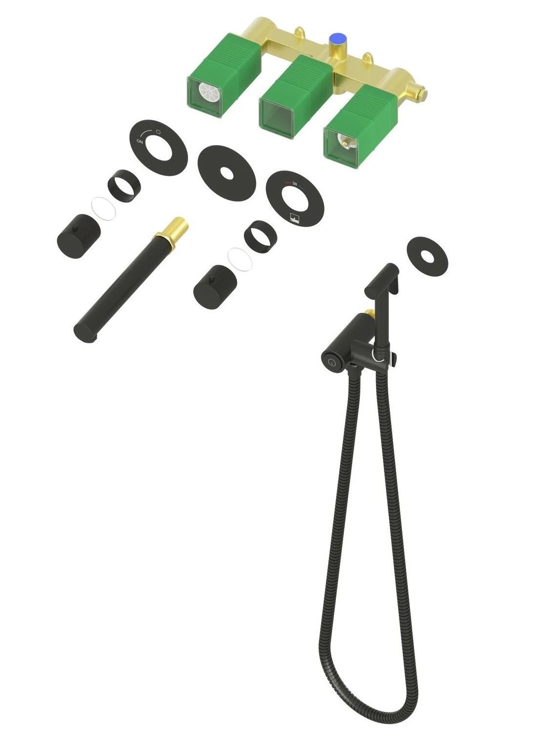 Черная сантехника становится все более популярной для ванных комнат из-за способности расставлять акценты. Встраиваемый смеситель с функцией подключения гигиенического душа Timo Saona 2383 предназначен для монтажа в твердой или полой стене. Встроенныи? блок может быть установлен с левым или правым подключением гигиенического душа. Гигиенический душ можно установить автономно на любом расстоянии от смесителя. Для использования гигиенического душа включать смеситель не требуется. Подача воды на гигиеническую лейку осуществляется нажатием кнопки, расположенной на корпусе держателя лейки. В смесителе установлен термостатический картридж для поддержания стабильной температуры воды в смесителе и гигиеническом душе. Подача воды и увеличение напора в смесителе осуществляется поворотом ручки расположенной справа (при установке душа слева). Сложностей монтажа не возникает при установке смесителя опытным сантехником. Основные преимущества встроенного смесителя: коммуникации, крепления и механизмы спрятаны в стену и видны только декоративные элементы, установить встроенный смеситель можно в любом месте. Внимательно изучите инструкцию по монтажу и эксплуатации. Черная сантехника требует бережного ухода.