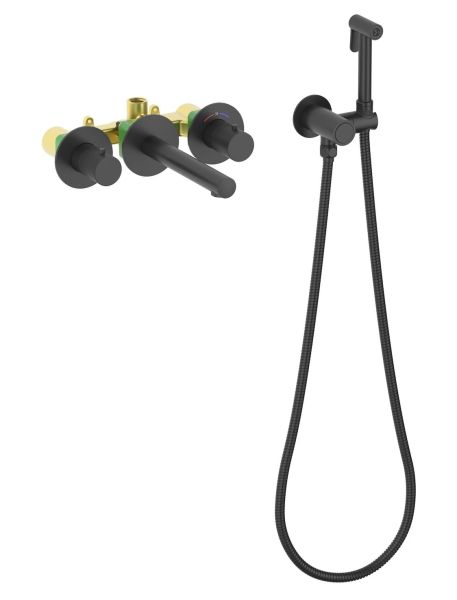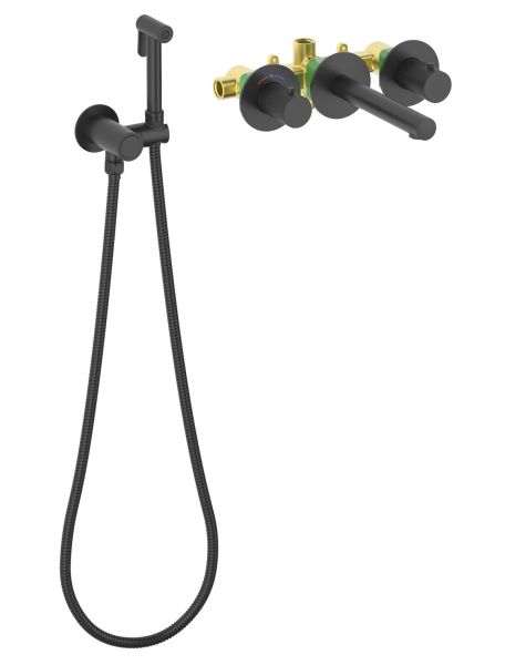 Смеситель встраиваемый для раковины Timo Saona 2383/03SM с гигиеническим душем чёрный