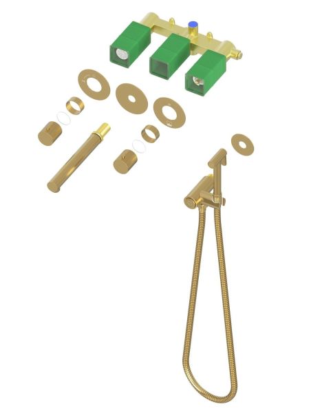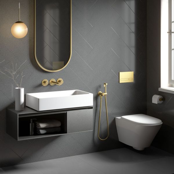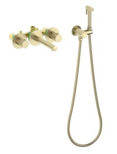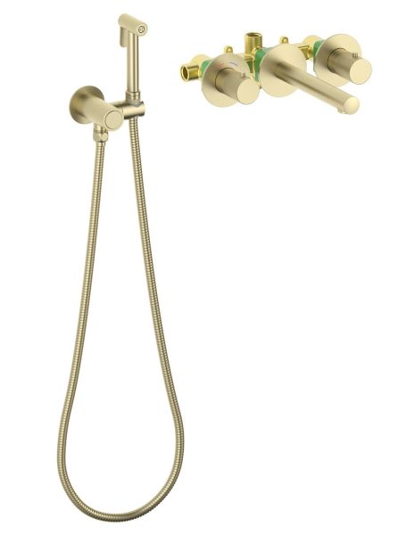 Смеситель встраиваемый для раковины Timo Saona 2383/17SM с гигиеническим душем золото матовое