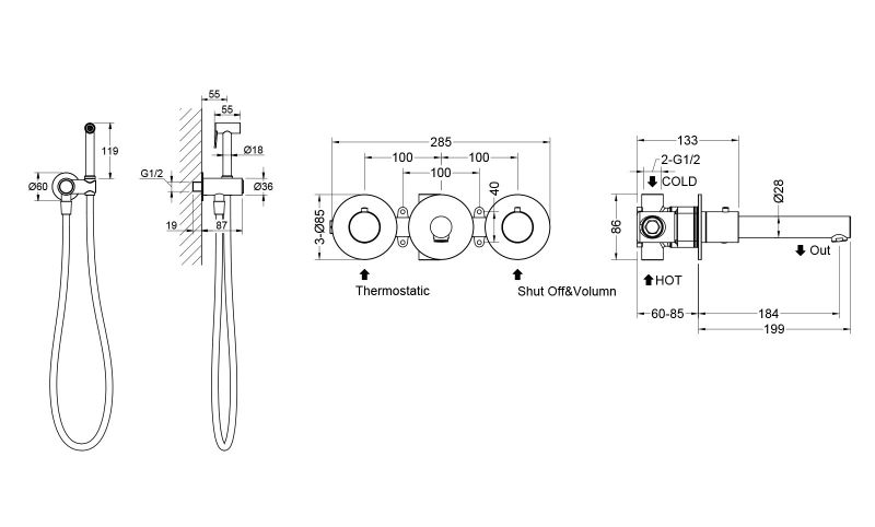 Цвет "матовое золото" никогда не выйдет из моды, во все времена драценный металл был признаком богатства. Встраиваемый смеситель с функцией подключения гигиенического душа Timo Saona 2383 предназначен для монтажа в твердой или полой стене. Встроенныи? блок может быть установлен с левым или правым подключением гигиенического душа. Гигиенический душ можно установить автономно на любом расстоянии от смесителя. Для использования гигиенического душа включать смеситель не требуется. Подача воды на гигиеническую лейку осуществляется нажатием кнопки, расположенной на корпусе держателя лейки. В смесителе установлен термостатический картридж для поддержания стабильной температуры воды в смесителе и гигиеническом душе. Подача воды и увеличение напора в смесителе осуществляется поворотом ручки расположенной справа (при установке душа слева). Сложностей монтажа не возникает при установке смесителя опытным сантехником. Основные преимущества встроенного смесителя: коммуникации, крепления и механизмы спрятаны в стену и видны только декоративные элементы, установить встроенный смеситель можно в любом месте. Внимательно изучите инструкцию по монтажу и эксплуатации.