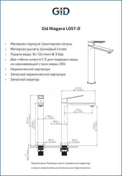 Смеситель высокий для раковины Gid Niagara L057-CH-D L057CHD хром купить