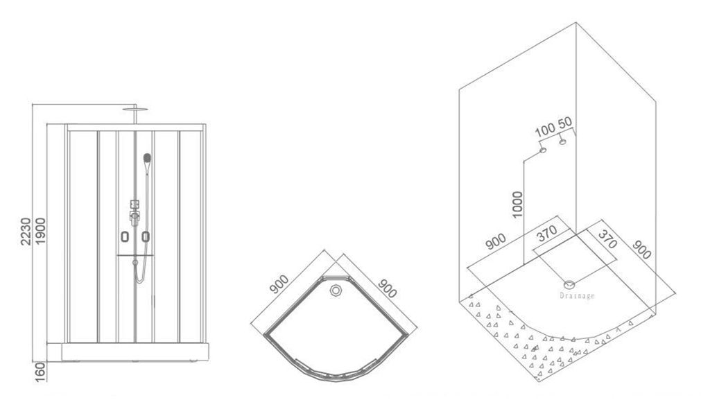 Полукруг, без пара. без крыши, с акриловым поддоном высотой 150 мм, верхним и ручным душем, стекла 8мм прозрачные, но по желанию могут быть тонированные, матовые, белые. Без гидромассажа спины. Простая и быстрая установка, сборка без силикона.
