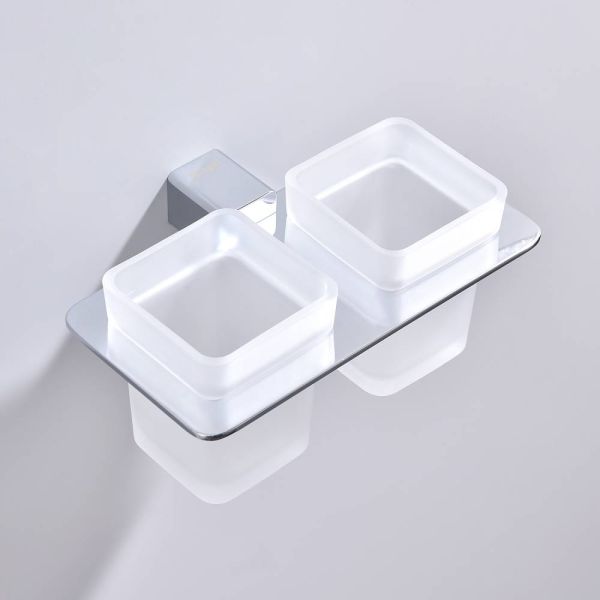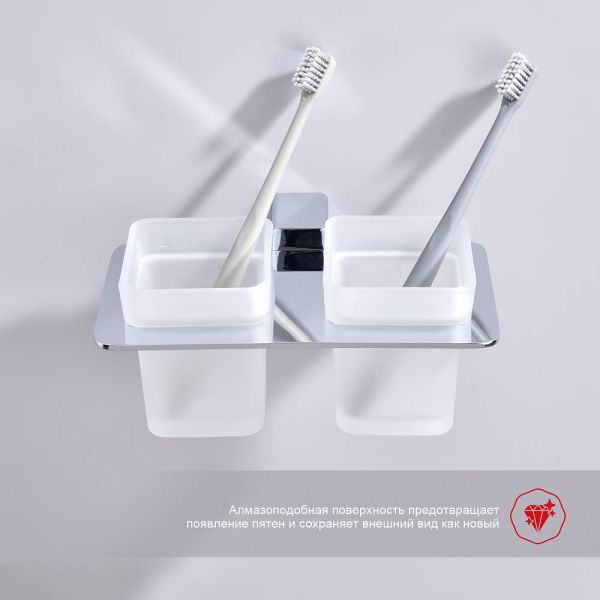 Дизайн: Держатель выполнен в цвете хром, что придает ему современный и элегантный вид. Лаконичный дизайн стаканов гармонично сочетается с любым интерьером ванной комнаты.