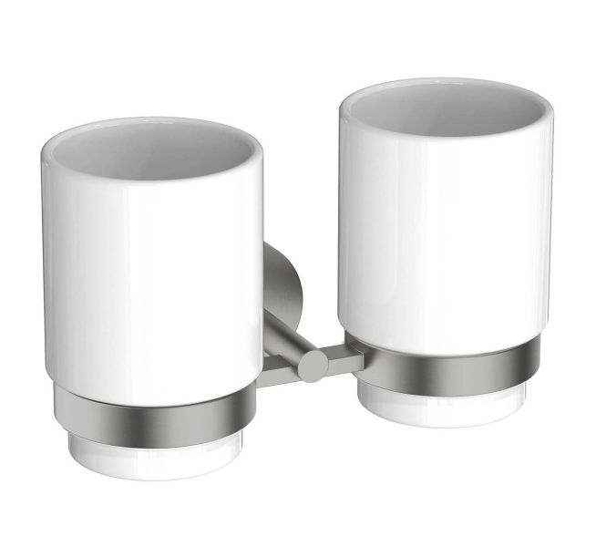 Стакан с держателем двойной Aquatek Бетта AQ4617BGM шлифованный чёрный хром