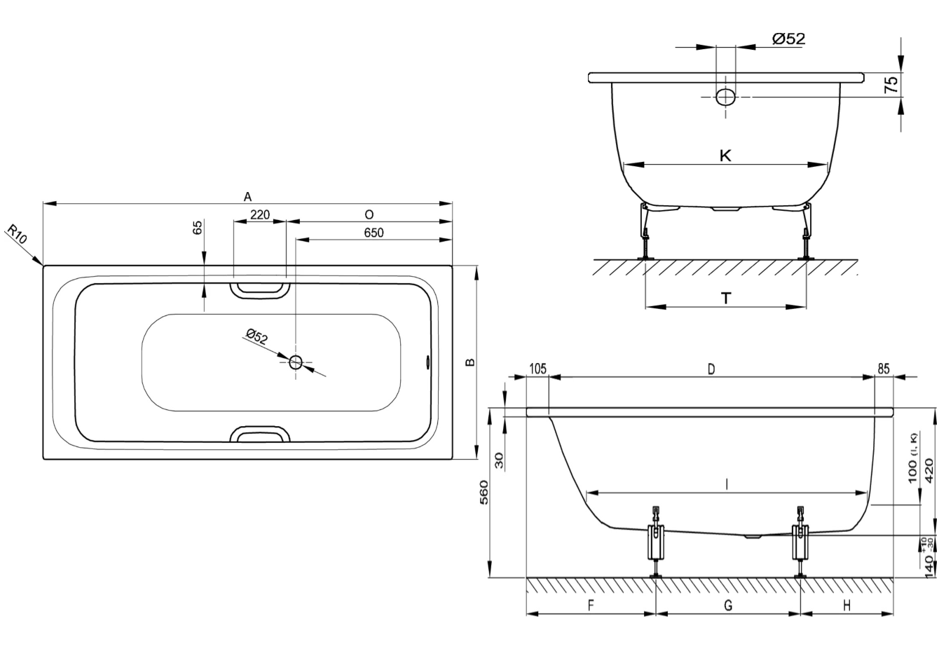 • Стандартные размеры, см: