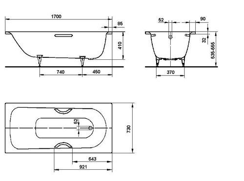 Стальная ванна Kaldewei Saniform Plus Star Мод.334 170х73 + отв.под ручки 133400010001