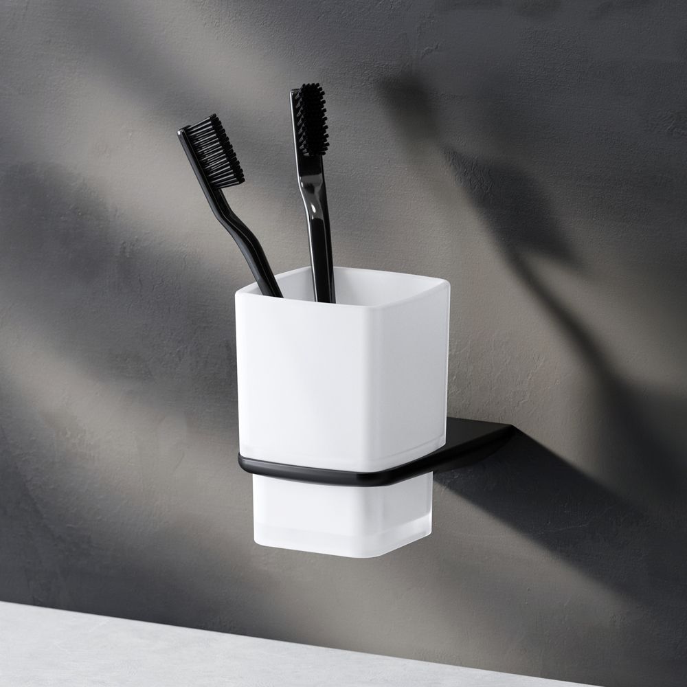Стеклянный стакан с настенным держателем Am.Pm Inspire 2.0 чёрный матовый A50A34322 купить