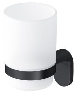 Стакан с настенным держателем в глубоком черном цвете из коллекции Х-Joy, чтобы самое необходимое всегда было под рукой. Идеально впишется в современную ванную комнату и будет радовать глаз каждый день.- Матовое стекло отличается прочностью и лёгкостью в уборке.- Держатель плотно прилегает к стене и не расшатывается за счёт специального шурупного крепления.- Уплотнительный элемент между стеклянным стаканом и его держателем надёжно фиксирует приспособление.- Выполнен в современном дизайне, легко комбинируется с другими продуктами бренда.