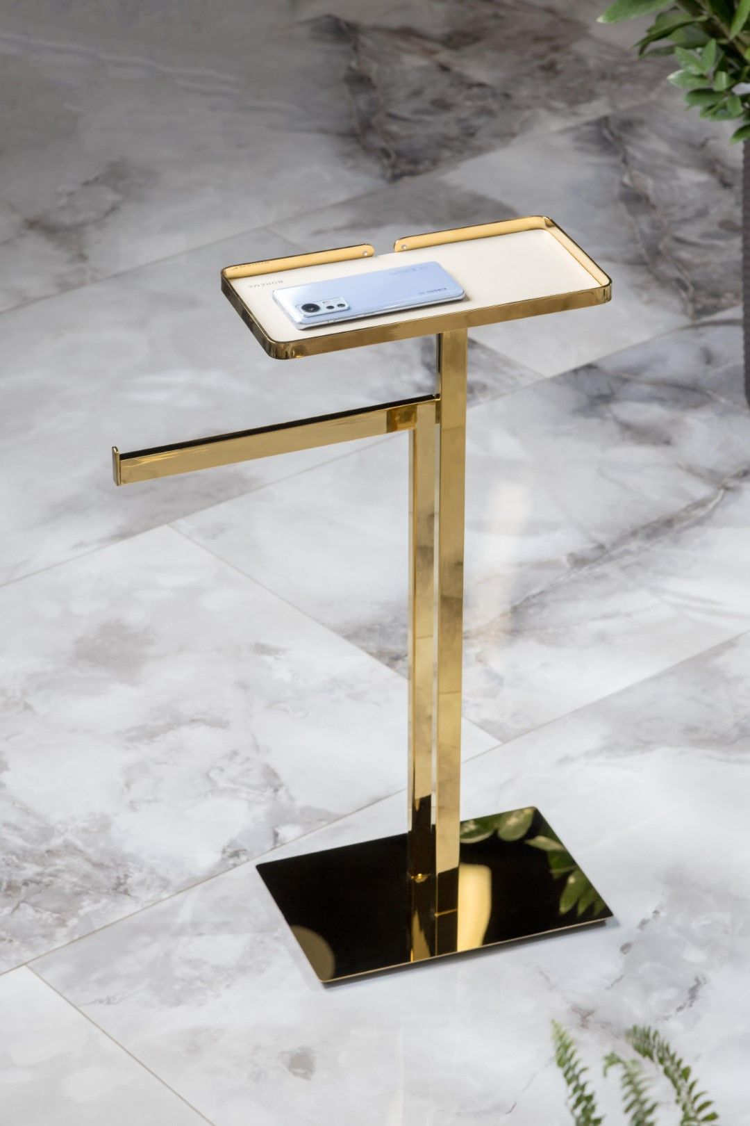 Стойка напольная с полкой и полотенцедержателем Boheme 10952-G золото купить