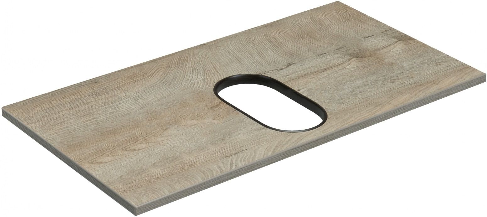 Столешница Лофт Фабрик в цвете Дуб Эндгрейн выполнена из влагостойкой ламинированной плиты. Столешница является необходимым дополнительным элементом для тумбы Лофт Фабрик 80 в Дуб Эндгрейн при выборе опции с накладной раковиной.