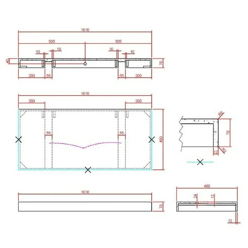 Размерный ряд раковин-моноблок 80см, 100см. 120см. 140см(возможна установка 2 смесителей).