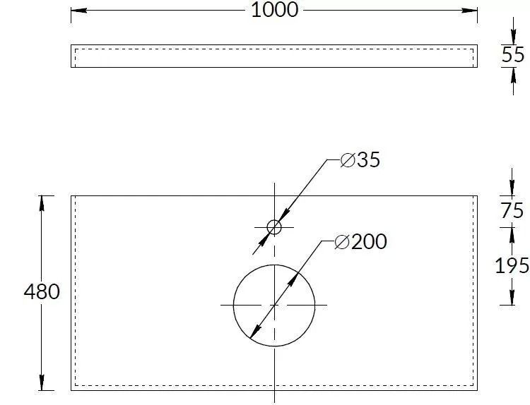 Столешница из керамического гранита «Про Чементо» с отверстием под смеситель. Предназначена для использования раковинами CANALETTO, а также с тумбами MODULA. Отверстия для раковины и смесителя располагаются в центре. Смеситель устанавливается в столешницу (используйте смесители с подходящим типом установки).
