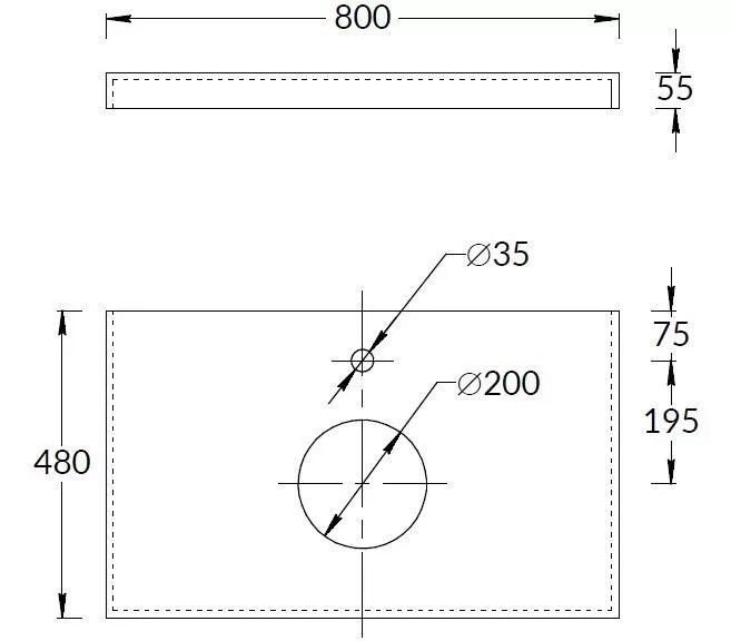 Столешница из керамического гранита с эффектом камня Роверелла с отверстием под смеситель. Отверстия для раковины и смесителя располагаются в центре. Смеситель устанавливается в столешницу (используйте смесители с подходящим типом установки)