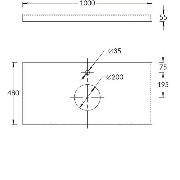 - Размеры: (Ш:Г:В): 1000 х 480 х 55 мм