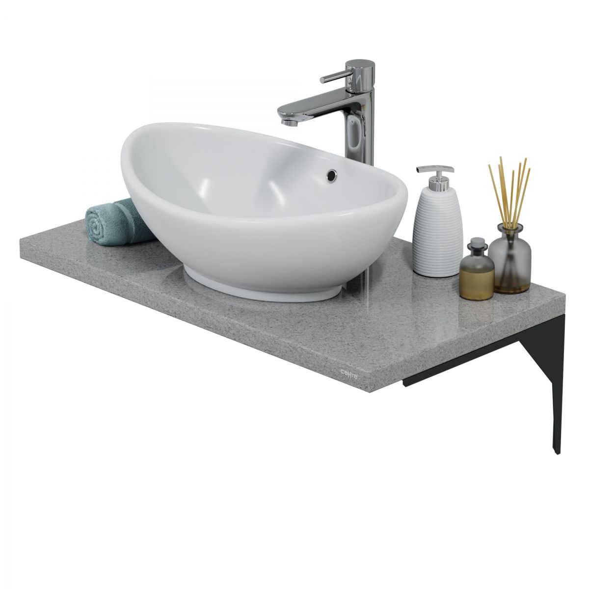 Глубина 45 см. -Возможна установка на кронштейны (арт 900139 и 900140) или консоль (арт 900145) -Возможна установка с разными умывальниками для столешниц, из нашего ассортимента подойдет Kirovit Гамма 56 -Сифон в комплект поставки не входит. -Гарантия 1 год. -Материал: Литьевой мраморСтолешницы из литьевого мрамора отличное решение для современной ванной комнаты. Они водоустойчивые, достаточно прочные и очень похожи по внешнему виду изделиям из натурального мрамора или гранита. Рядом с раковиной, установленной такую столешницу, появляется много полезного места для хранения необходимых вещей, которые в ванной комнате хочется держать под рукой. Наши изделия изготавливаются по технологии «литьевого мрамора» и покрываются высококачественным декоративным покрытием одного из лидеров композитной отрасли. Поверхность раковин изготовлена с использованием гелькоута Maxguard GN S, соответствуют требованиям стандарта American Thermal Shock ANSI Z124.3-86 для санитарного применения. Литьевая смесь готовится по специально разработанной рецептуре, с использованием высококачественных отечественных и импортных материалов, при постоянном контроле качества