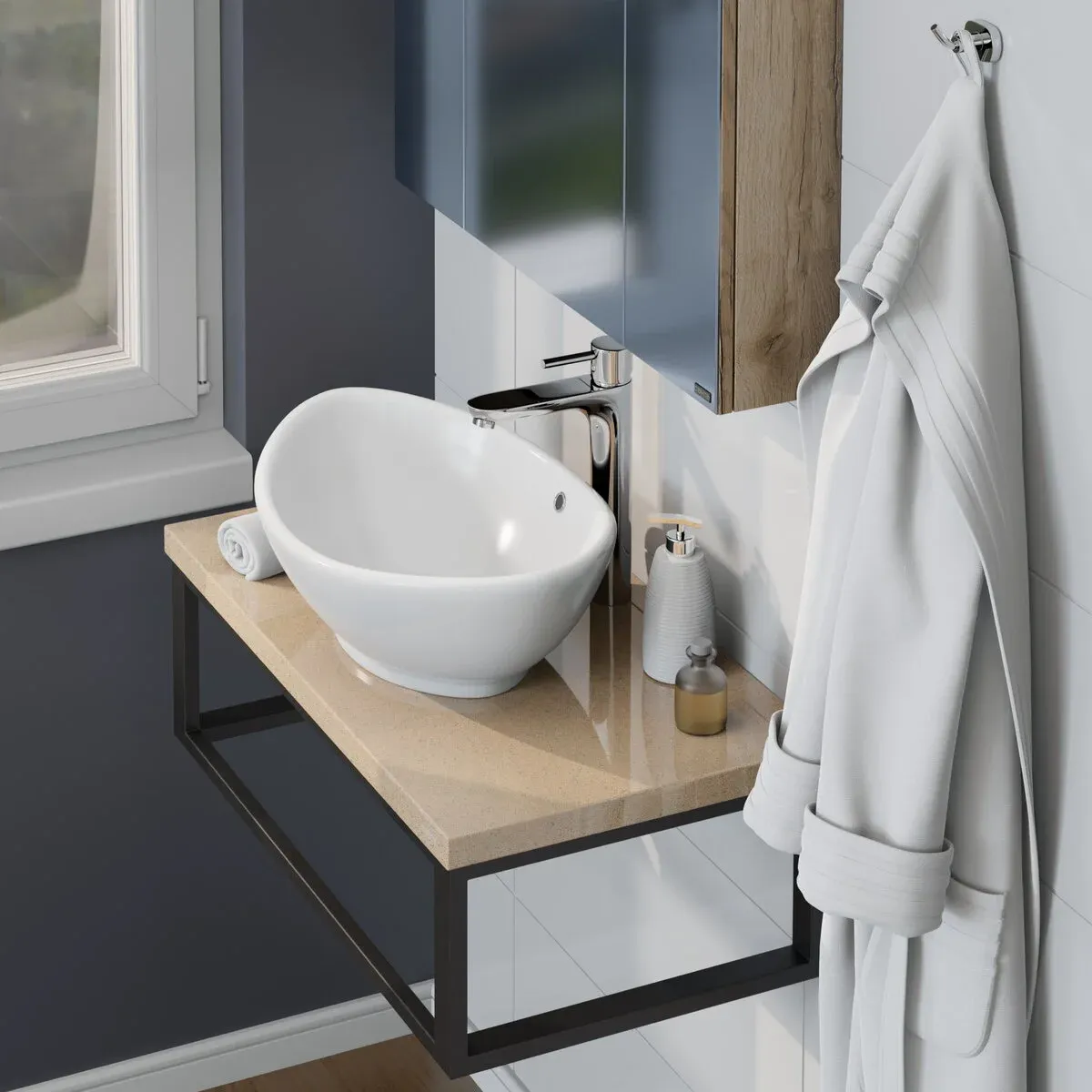Возможна установка с разными умывальниками для столешниц.