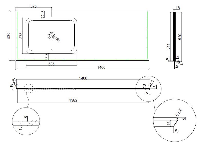 Столешница Vincea из кварца с интегрированной раковиной VWTB-4LX140QBG-R, правая, цвет бежевый
