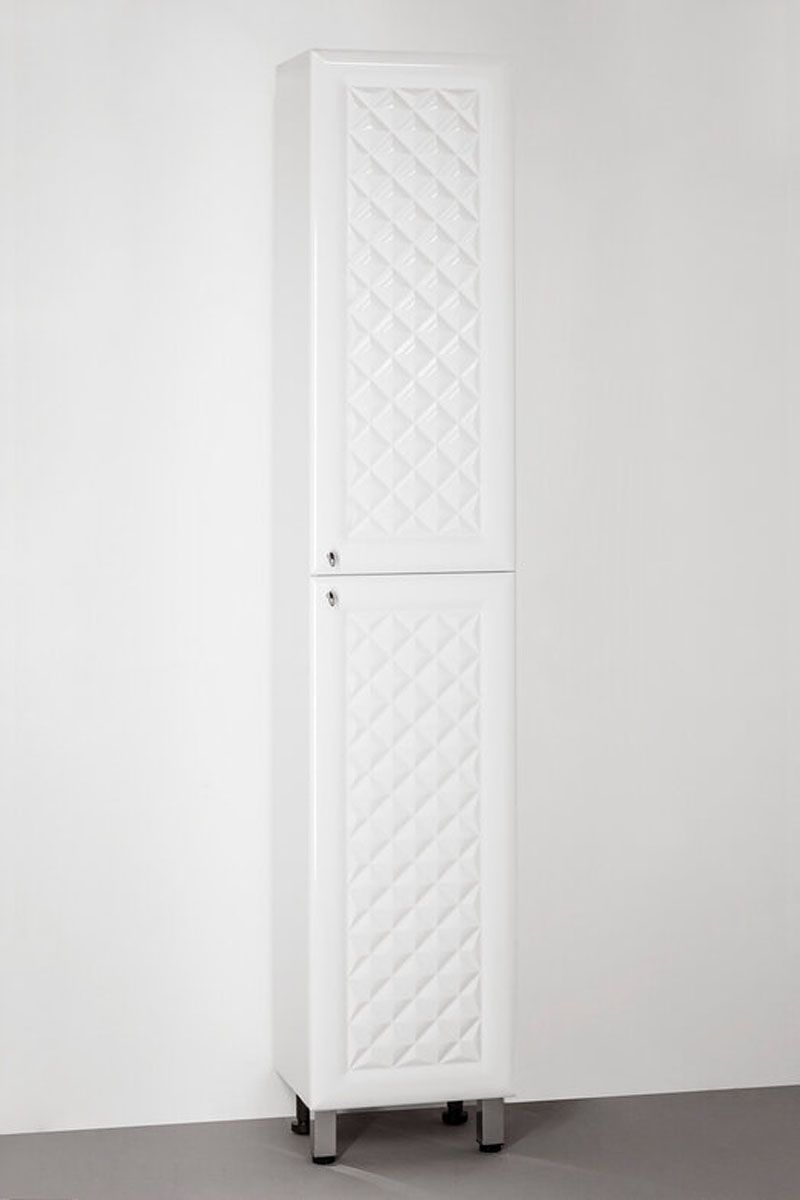 Колонна напольная бренда "Style Line" коллекции "Канна" с современной 3D фрезеровкой фасада, которая придает мебели индивидуальность и особый колорит. Фурнитура - хром, петли на дверцах с механизмом плавного закрывания