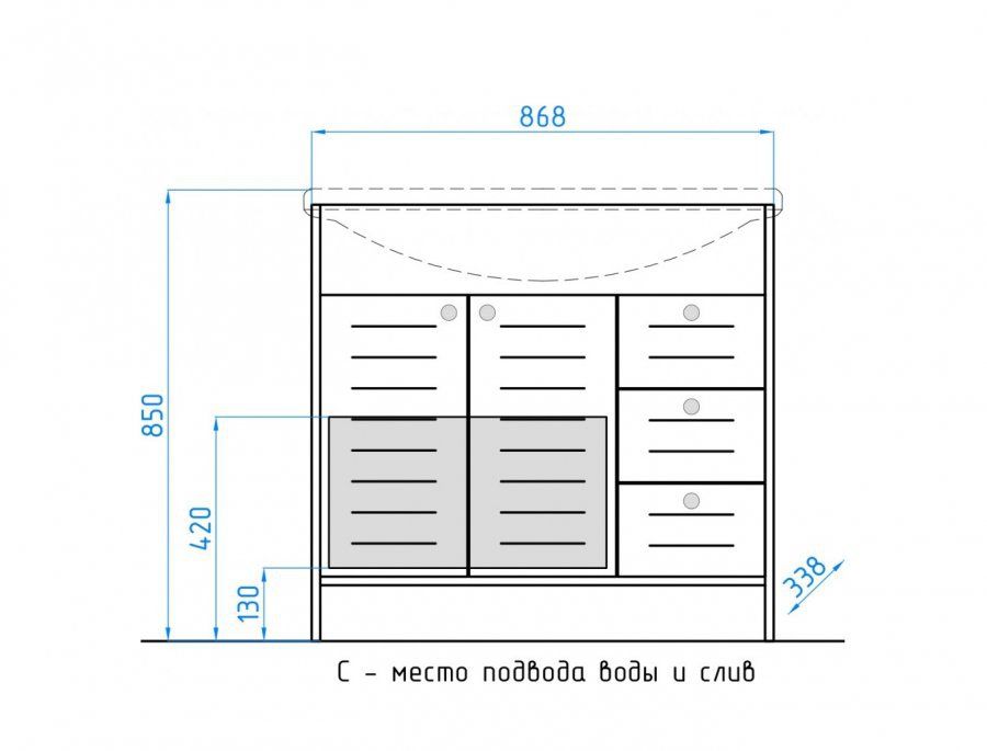 Тумба напольная бренда "Style Line" коллекции "Кантри" имеет оригинальные ручки "под бронзу", петли на дверцах с механизмом плавного закрывания, декоративную фрезеровку фасадов. Сборка изделия с помощью эксцентриковых стяжек Hafele; все материалы полностью влагостойкие. Данная тумба предусматривает открытую подводку воды