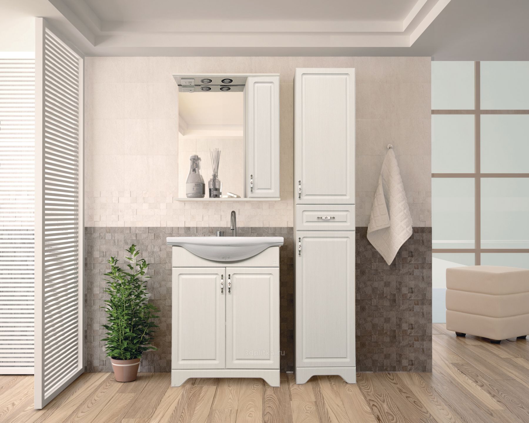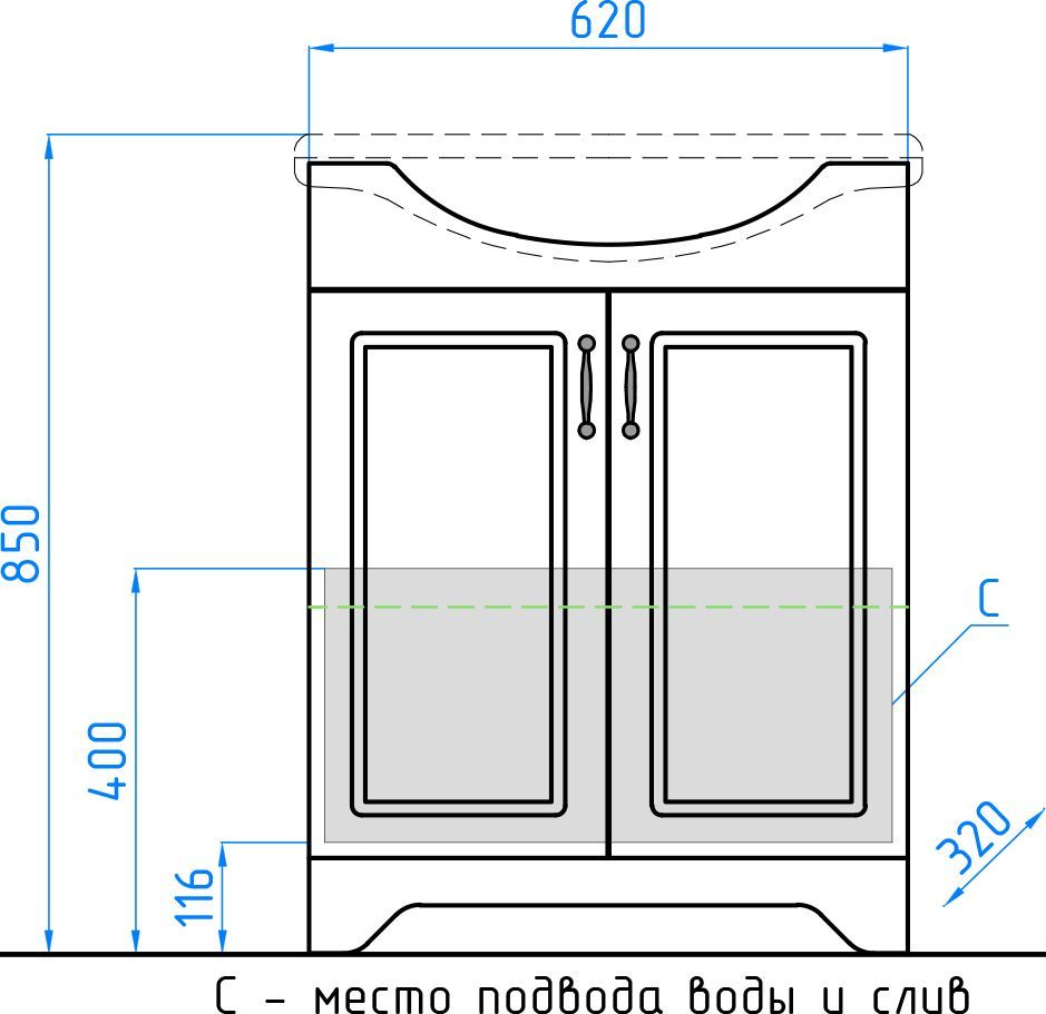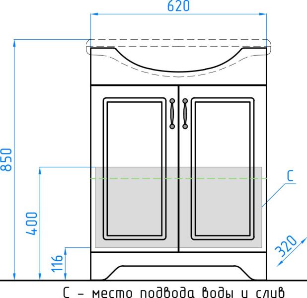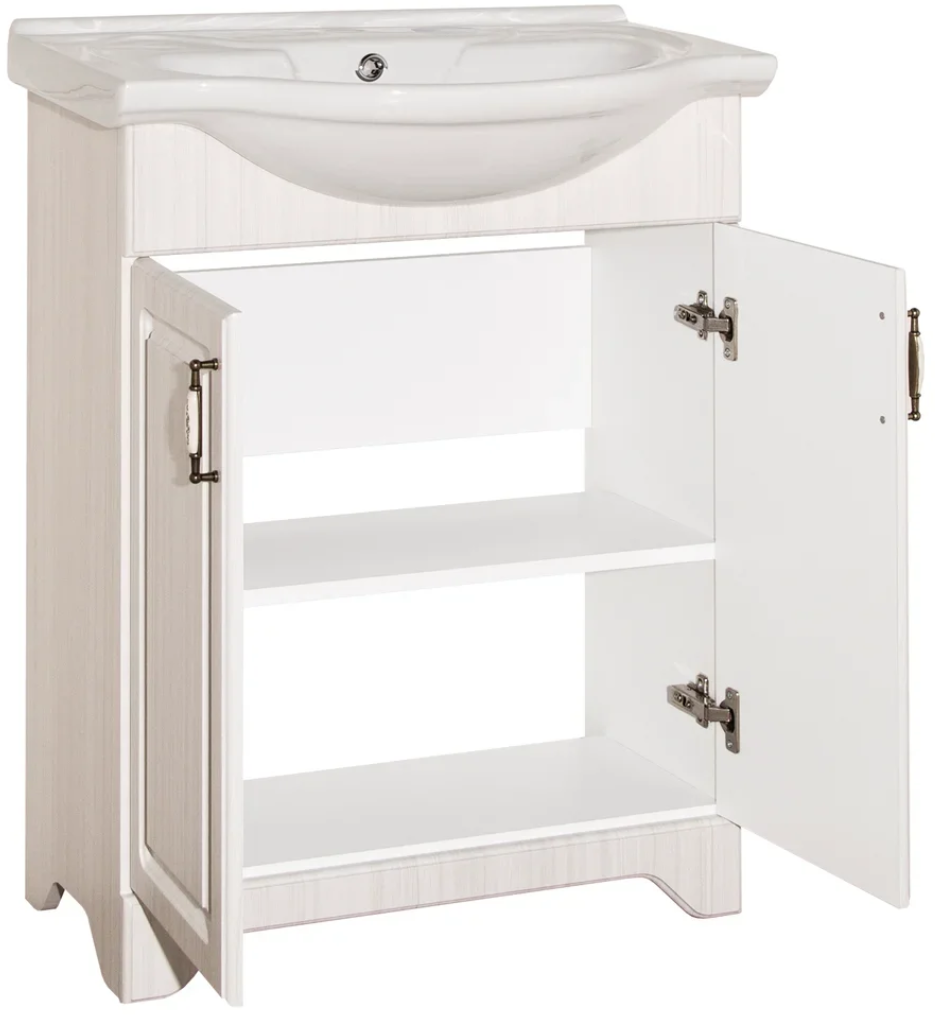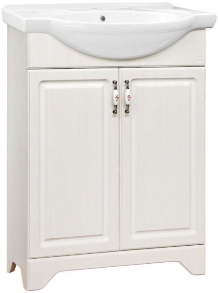 Тумба напольная бренда "Style Line" коллекции "Олеандр-2" классического дизайна, декорированная ручками с керамическими вставками "под бронзу" с изящным рисунком. Направляющие полного выдвижения Hettich; сборка изделия с помощью эксцентриковых стяжек Hafele; все материалы полностью влагостойкие. Данная тумба предусматривает открытую подводку воды