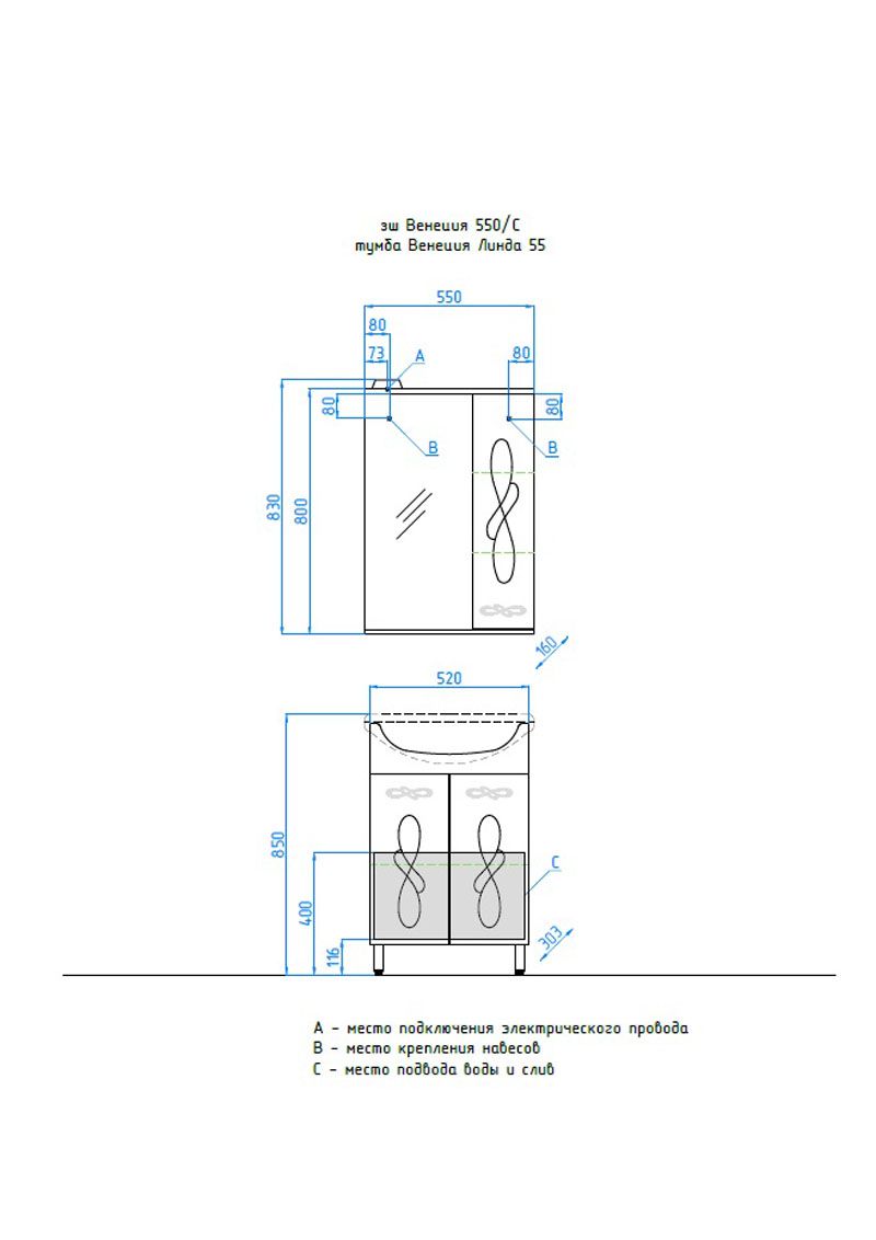 Тумба под раковину Style Line Венеция 55 ЛС-00000253 купить