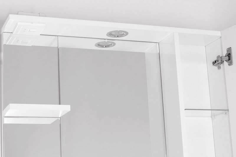 Зеркальный шкаф Style Line коллекции "Канна" с подсветкой; стеклянные полки с еврокромкой и прозрачными полкодержателями Hefele; лазерная гравировка фирменного логотипа; встроенные светильники в шкафах комплектуются выключателем, розеткой и трансформатором. Высокоточная обработка кромки фацетом 10 мм придает изделию законченный вид и защищает от порезов. Боковины изделий в пленке в цвет фасадов