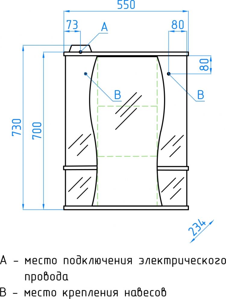 Тип:зеркало-шкаф с подсветкой