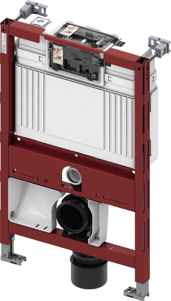 Модуль унитаза для крепления на профиле TECEprofil или монтажа перед стеной. Совместим с универсальным соединением унитаза-биде со скрытым соединением водопровода и электропитания, например, Geberit AquaClean 8000/Sela/Mera, Duravit SensoWash C, V & B ViClean, TOTO RX/SX/SG 2.0/EK 2.0/GL 2.0, VitrA V-care. Также можно подсоединять изделия других производителей. При этом предварительно необходимо проверить расположение соединений. Комплект поставки предварительно собранного блока: Сливной бачок Uni с приводом спереди: • Надежный бак из ударопрочного пластика • Предварительно собранный и опломбированный сливной бачок • Соединение для сливного бачка с внутренней резьбой 1/2" • Объем бачка 10 литров: предустановленный объем стандартного смыва 6 литров, можно настроить объем смыва 4,5/7,5/9 литров; объем малого смыва 3 литра для системы двойного смыва. Оставшийся объем можно использовать для быстрого смыва. • Изоляция для предотвращения образования конденсата • Для панелей и рукояток смыва унитазов TECE • Возможность установки системы с одинарным или двойным смывом в зависимости от используемой панели смыва. • Сертификация согласно DIN EN 14055 • Акустическая группа 1 в соответствии с DIN 4109 • Бесшумный гидравлический заливной клапан Комплект поставки модуля: • Несущая монтажная рама с порошковым покрытием поверхности • Две крепежные шпильки M 12 с гайками • Два крепления модуля с регулировкой по глубине • Фановый отвод унитаза DN 90, включая переходник DN 90/100 из PP • Переходник также подходит для горизонтального монтажа • Соединительный комплект унитаза DN 90 • Короб включая вставную воронку для универсального позиционирования соединения для подачи воды • Кабельная коробка для универсального позиционирования подключения электропитания • Крышка корпуса с защитными заглушками Дополнительно приобретается: • Панель смыва унитаза (см. панели смыва) • Контейнер для гигиенических таблеток (опционально) • Комплект для подключения унитазов-биде для модуля высотой 820 мм (арт. 9880054) • Прокладка звукоизоляционная (арт. 9200010) Примечание: При использовании унитаза с уменьшенной опорной поверхностью (например, Villeroy & Boch Memento, Subway 2.0) необходимо установить комплект стальных кронштейнов (арт. 9041029) в нижней части конструкции. Внимание! При фронтальном монтаже панели смыва она будет перекрываться стандартной крышкой-сиденьем для унитаза в открытом виде. В некоторых случаях это может привести к проблеме с фиксацией крышки в открытом состоянии. Рекомендуется устанавливать панель смыва на верхнюю поверхность, особенно при использовании укороченных моделей унитазов.