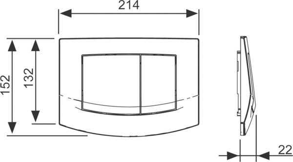 Панель смыва для смывных бачков TECE, фронтальное или верхнее расположение панели смыва. Пластиковая панель смыва, клавиши с резиновыми накладками с двух сторон. В комплект входят толкатели и крепежные элементы. Совместима с контейнером для гигиенических таблеток. Размеры (Ш x В x Г): 214 x 152 x 22 мм