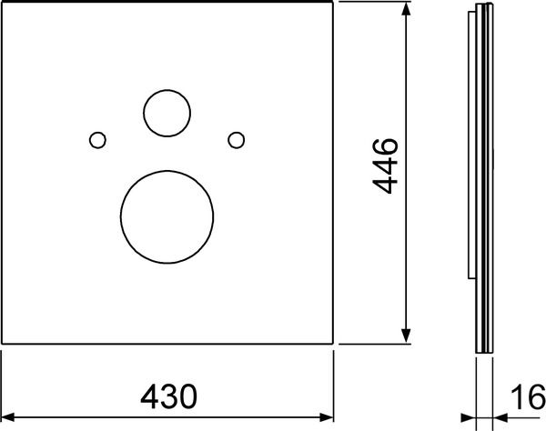 Нижняя стеклянная панель для установки стандартного унитаза, установочное расстояние 180 мм, в комплекте со звукоизолирующей прокладкой. Размеры (В x Ш x Г): 446 x 430 x 16 мм
