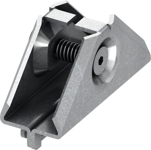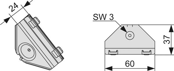 Угловое соединение для жесткого прямоугольного соединения профилейTECEprofil; блок в сборе из оцинкованной стали; винт под торцевой ключM5 (SW 3) и нажимная пружина.