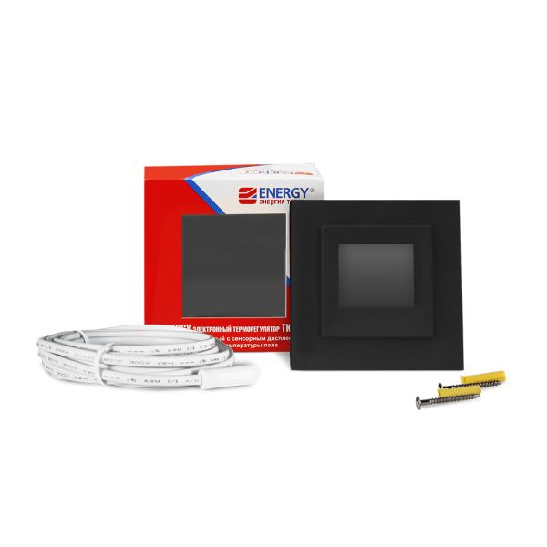 Электронный программируемый терморегулятор Energy TK08 с крупным сенсорным жидкокристаллическим дисплеем и выносным датчиком температуры пола. Предназначен для скрытого утопленного монтажа с использованием стандартной монтажной коробки.Диапазон регулировки температуры: от +5°С до +40°С. Точность настройки 0,5°С и функция программирования снижают расходы на потребляемую электроэнергию на 60-80%.Оснащен функцией программирования с возможностью установки четырех графиков работы теплого пола для рабочих дней недели и двух для выходных дней. Для каждого режима устанавливается время работы и нужная температура. Минимальное время работы каждой программы - 10 минут.Терморегулятор дополнен функцией «ранний старт» - используя данные за предыдущий день работы, прибор вычисляет время, за которое пол нагреется до заданной температуры. На величину этого времени корректируется запуск теплого пола.Управление с помощью пятью сенсорных кнопок. На экране отображаются данные о режиме работы, текущей температуре, дне недели и времени. При нажатии кнопок автоматически включается неоновая подсветка синего цвета.Корпус терморегулятора защищён от конденсата (класс защиты IP 21). Подходит для установки в помещениях с повышенной влажностью.Данный терморегулятор совместим с рамками других производителей, таких как Schneider, Gira, Jung и ABB.
