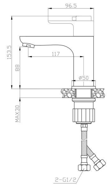 • Высота смесителя: