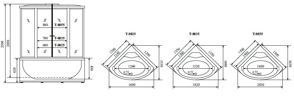 Timo Comfort Т-8835 Fabric Glass душевая кабина (135*135*220)