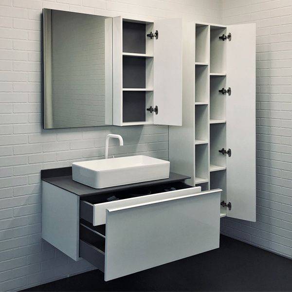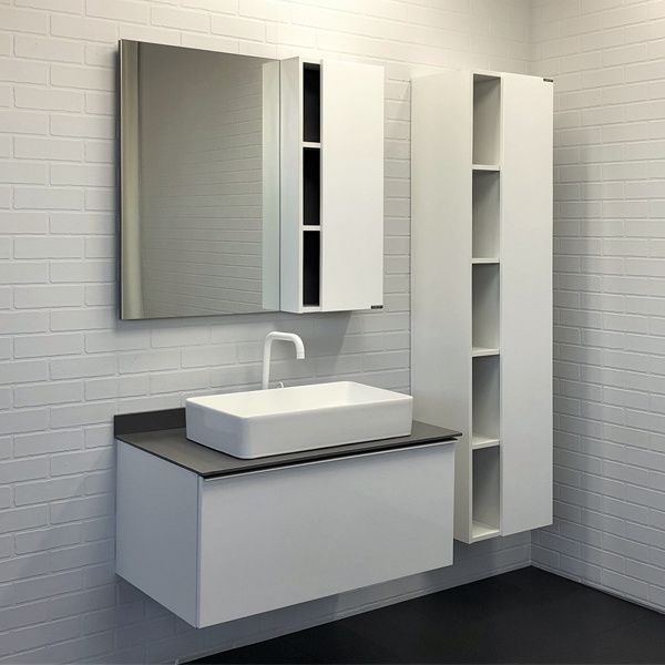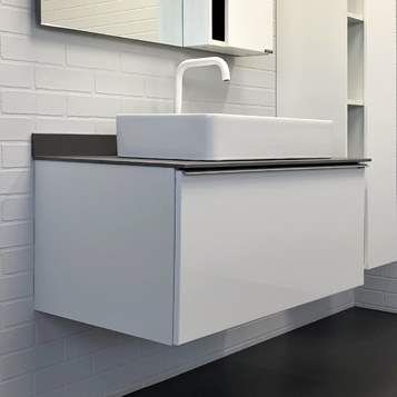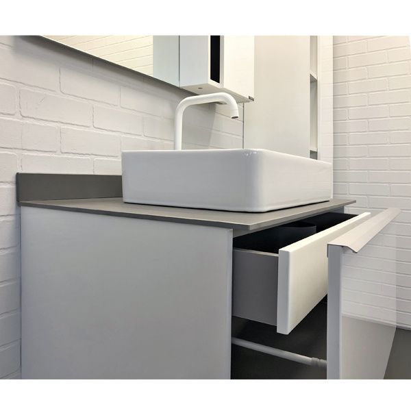 Тумба-умывальник Comforty Милан-90 белая с графитовой столешницей с раковиной Comforty 78189Подвесная тумба-умывальник в современном стиле с выкатным ящиком оснащенным системой с плавного закрывания. За основным фасадом скрывается внутренний ящик оснащенный системой push-to-open (открытие при нажатии). Тумба укомплектована столешницей и плинтусом из керамогранита светло-серого цвета и накладной прямоугольной раковиной. Фасады покрыты белой глянцевой эмалью.Тумба подготовлена для подключения водоснабжения снизу.Основные характеристики:Монтаж: подвесной