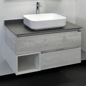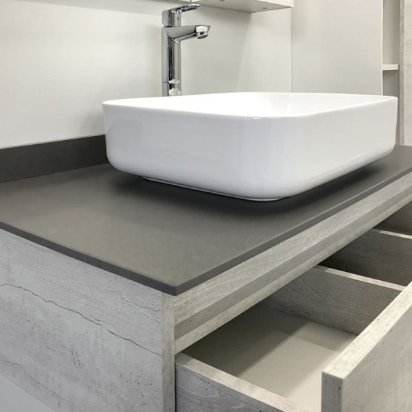 Комплектация: накладная раковина Comforty T-Y9378, столешница из керамогранита. Оба ящика оснащены направляющими с функцией плавного закрывания.