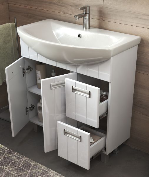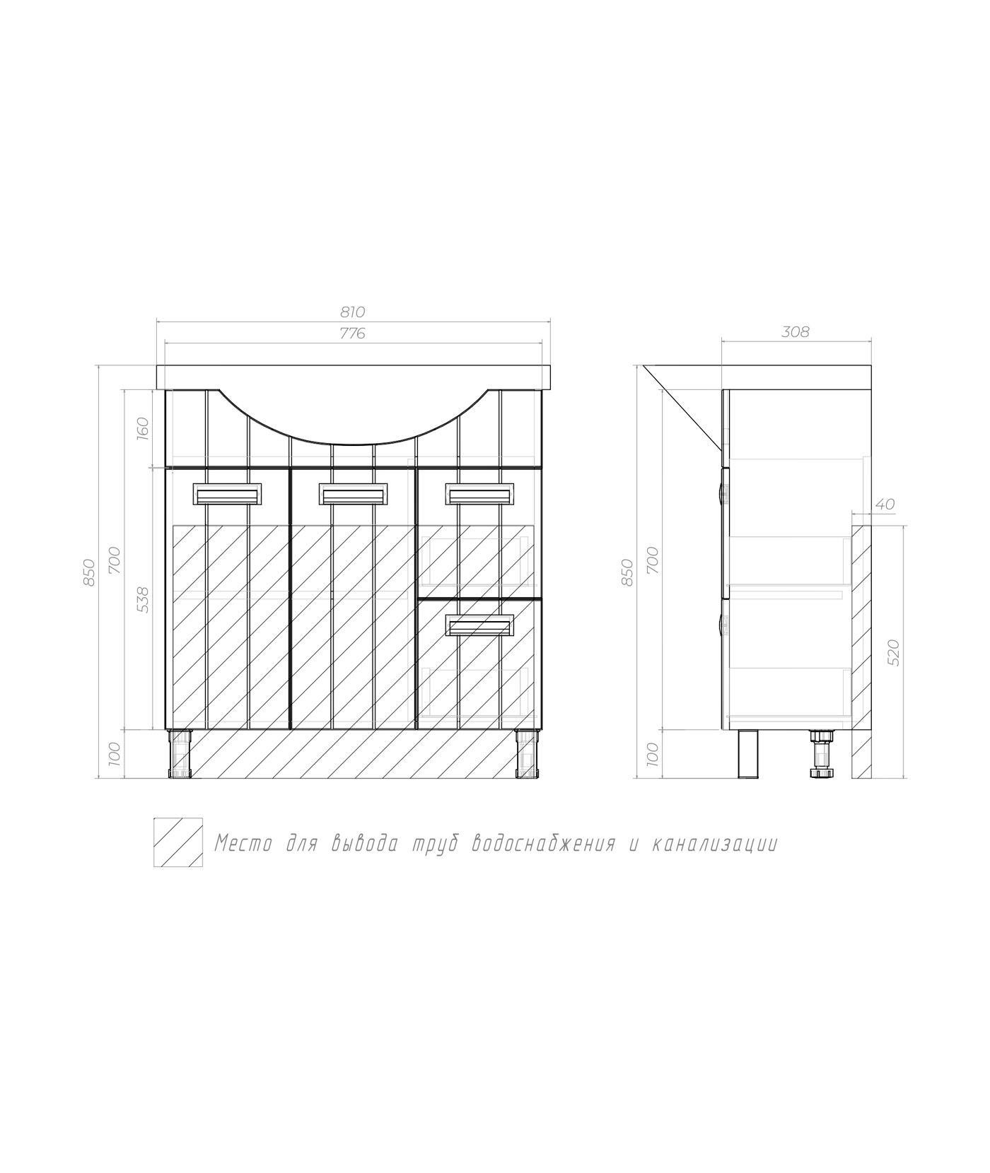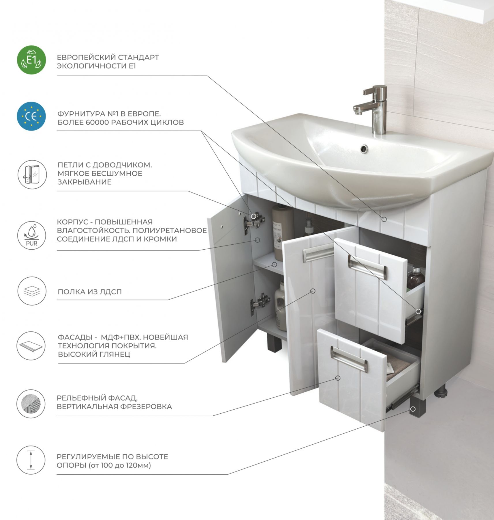 Тип:Тумба под раковинуТип установки:напольнаяРазмер:810?308?800 мм (Ш?Г?В)Объем упаковки:0.189Материал корпуса:ЛДСППокрытие корпуса:матовоеМатериал фасада:ЛМДФПокрытие фасада:глянцевая пленка ПВХМатериал раковины:керамикаФурнитура:хромФорма мебели:прямоугольнаяФорма раковины:прямоугольнаяСтиль:современный стиль (Hi-Tech)