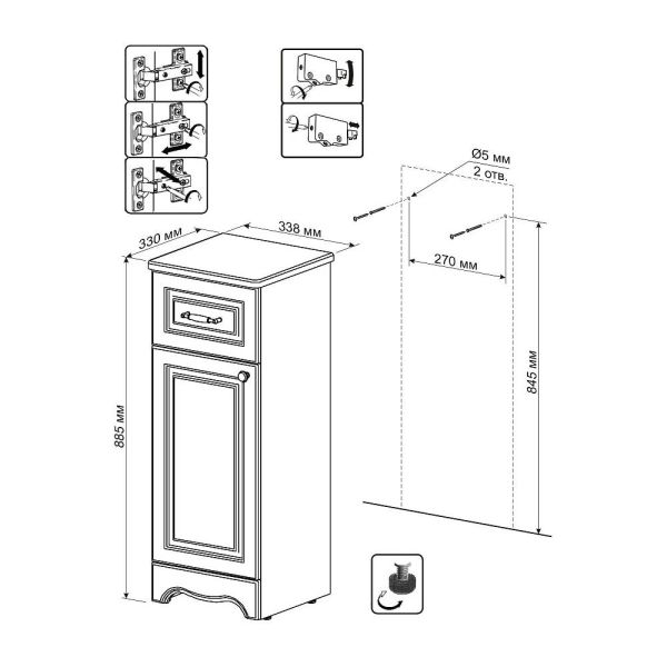 Тумба напольная Бриклаер Анна 4627125411472 правая 34 см белый купить