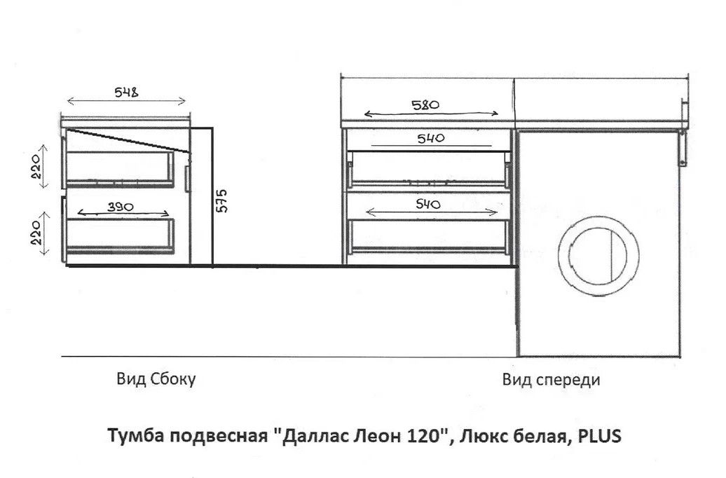 Тумба напольная Style Line Даллас Леон 120 Люкс Plus СС-00002449 под раковину для стиральной машины три ящика серый купить