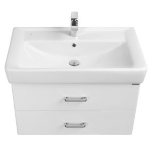 Реализовано нижнее подключение труб водоснабжения и канализации. Благодаря этому трубы можно вывести не только в стену (как это было организовано ранее), но и снизу. Теперь установка тумбы АМЕРИНА становится еще проще! Все коммуникации проходят за ящиком и дном тумбы и могут быть выведены в пол. Прежняя система подключения – для вывода труб из стены – так же осталась возможной.Тумба для комплекта Акватон Америна 80 белая не только не только функциональный предмет интерьера ванной комнаты, но отличное эргономичное дополнение дизайна, как небольшого, так и крупного помещения. Подвесной способ установки дает возможность не только визуально увеличить пространство, но и обеспечивает быстрый и удобный доступ для уборки.Компания Акватон использует при производстве высококачественные водоотталкивающие материалы (ДСП), соответствующие всем необходимым требованиям безопасности. Серия Америна отличается превосходным дизайном с соблюдением всех значимых элементов современного стиля. Основным цветом, в котором выполнена тумба под раковину Акватон Америна является белый, отлично подходящий большинству дизайнерских решений. Тумба под раковину предусматривает удобную и вместительную систему хранения, состоящую из ящиков. Качественные доводчики позволяют обеспечить мягкое и тихое закрывание. Важные габариты изделия: ширина 76 см, глубина 43.9 см, высота 46 см.Страной бренда Акватон является Россия, все товары производятся с выполнением соответствующих стандартов качества, что позволяет быть полностью уверенными в долговечности и надежности. Тумба для комплекта Акватон Америна 80 белая поможет сделать уютным любой интерьер и создать идеальную ванную комнату.