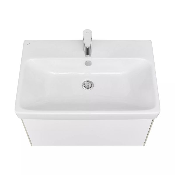 Белые фасады тумбы под раковину Асти 70 идеально сочетаются с боковыми стенками, выполненными в сдержанной древесной отделке Ясень Шимо Светлый: особенно органично она будет смотреться в интерьерах с отсылками к скандинавской эстетике. Сочетание цветов (белый глянец и ясень шимо) в коллекции АСТИ позволяет использовать мебель в современных интерьерах. Ящик тумбы оснащен механизмом Push-to-Open, гарантирующим плавное открывание и закрывание. Отличительная особенность мебели из коллекции - боковые стенки, при изготовлении которых используется особая инновационная технология. Благодаря ей создается эффект визуально тонких боковых линий, однако конструкция при этом остается надежной и прочной. Пространство для хранения в ящике тумбы можно организовать так, как удобно именно вам. Тумбы АСТИ комбинируются с раковиной Адриана бренда Santek.