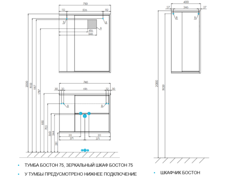 Тумба под раковину Акватон Бостон 75см белый/дуб эврика 1A252601BN010