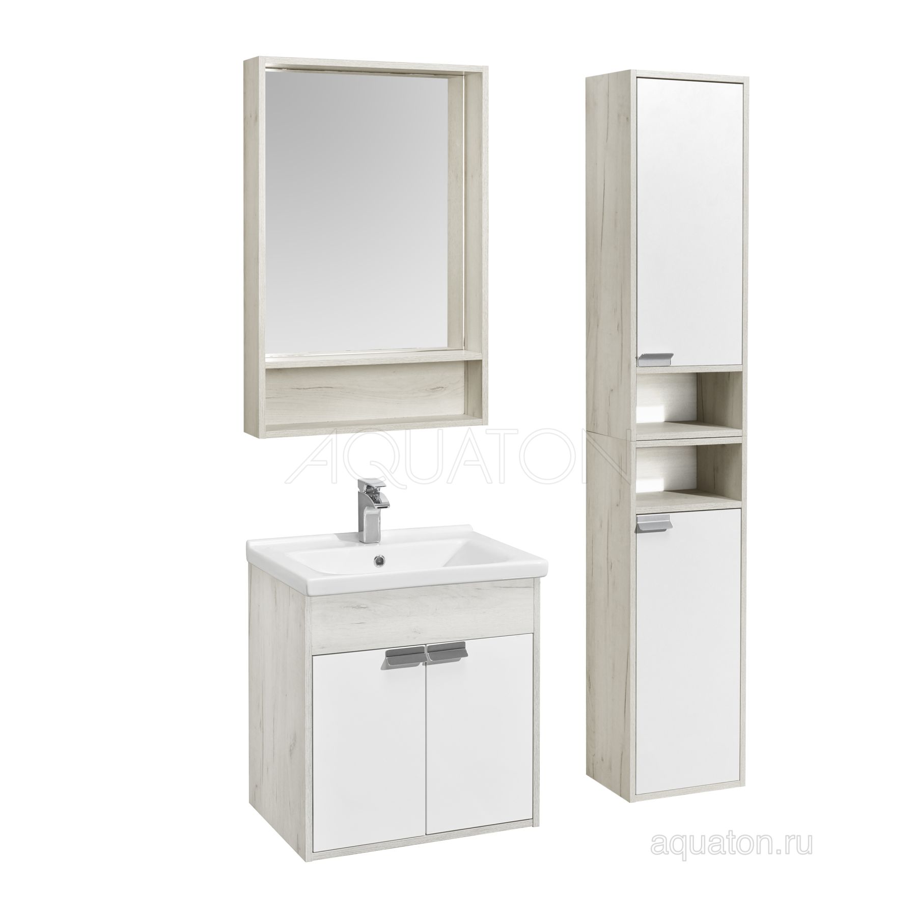 Тумба под раковину Акватон Флай 60см белый/дуб крафт 1A237301FAX10 купить