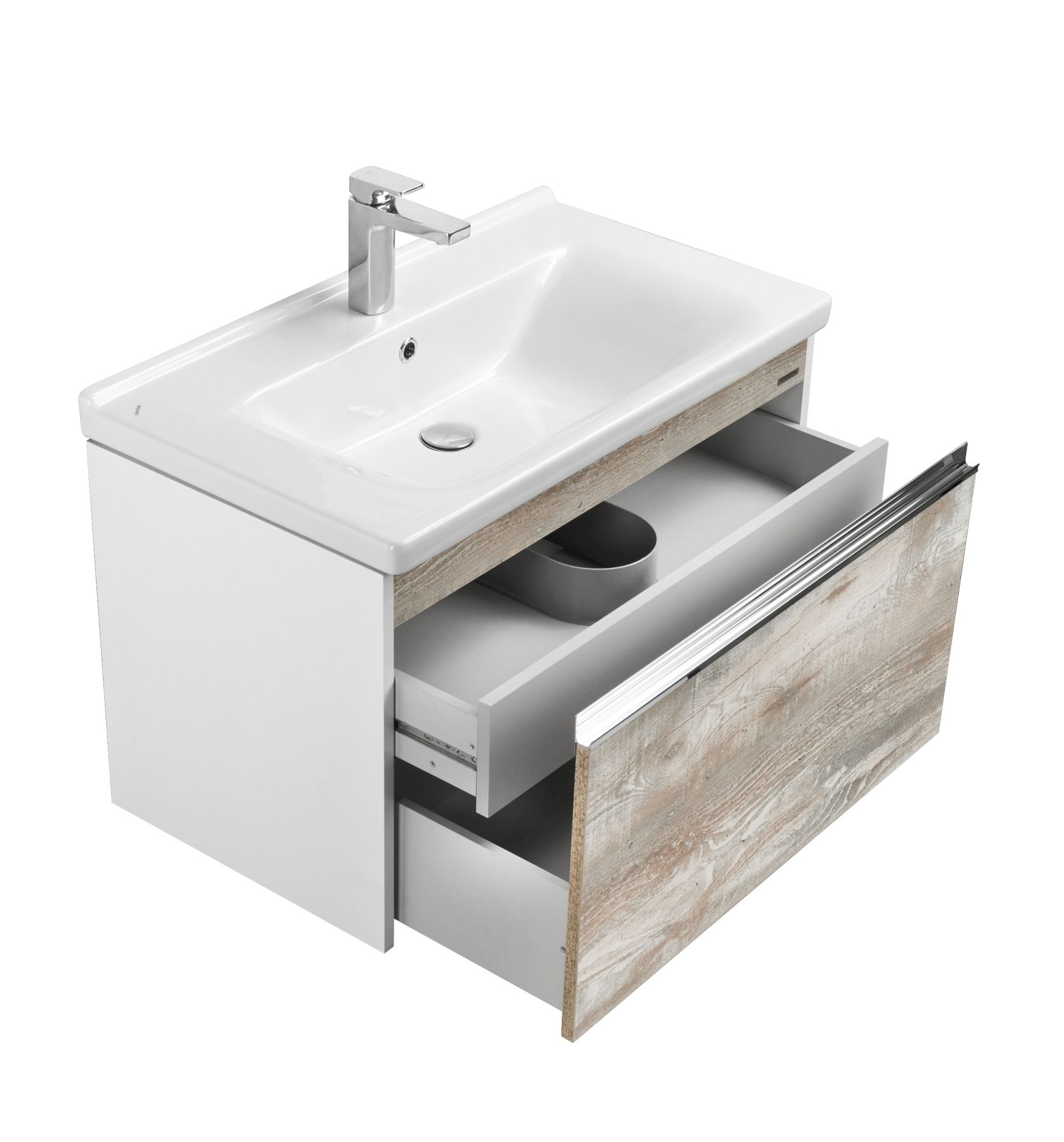Тумба для комплекта Акватон Капри 80 бетон пайн несравненно впишется в дизайн любой ванной комнаты, будь то компактная ванная в многоэтажном доме или большой санузел в загородном коттедже. Подвесной способ установки дает возможность не только визуально увеличить пространство, но и обеспечивает быстрый и удобный доступ для уборки.Компания Акватон использует при производстве высококачественные водоотталкивающие материалы (ДСП), соответствующие всем необходимым требованиям безопасности. Серия Капри отличается превосходным дизайном с соблюдением всех отличительных элементов современного стиля. Основным цветом, в котором выполнена тумба под раковину Акватон Капри является белый, отлично подходящий большинству дизайнерских решений. Тумба под раковину предусматривает удобную и вместительную систему хранения, состоящую из ящиков. Важные размеры товара: ширина 76 см, глубина 42.9 см, высота 49.3 см.Страной бренда Акватон является Россия, все товары производятся с выполнением соответствующих стандартов качества, что позволяет быть полностью уверенными в долговечности и надежности. Тумба для комплекта Акватон Капри 80 бетон пайн это абсолютный комфорт в современной ванной комнате.